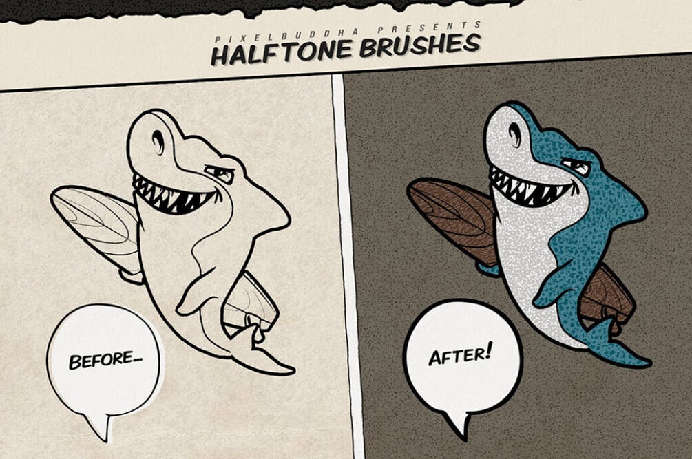 Bring your drawing skills to the new level with the suitable halftone Procreate brushes! The reference was taken from good old vintage comics with their worn press effect.