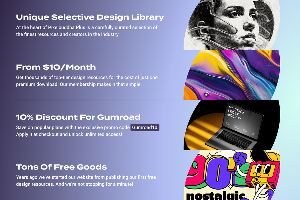 A huge collection of top-tier FREE resources is available in the Pixelbuddha catalog. You’ll also find thousands of high-quality assets from leading designers in our premium Pixelbuddha Plus library.