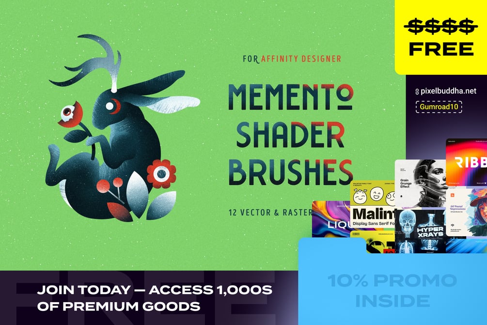 We've seen our brushes in action for Photoshop, Procreate and Illustrator. It would be logical to finish this collection by adding the last unrevealed format to the list. So please welcome Shader Brushes for Affinity! Here's the irreplaceable kit of 12 brushes you can use to take care of the hand-drawn masterpieces you come up with. They serve as great tools for working through all the details and for large-scale pieces of work. Besides, this collection is free, so just grab it and create something truly remarkable!